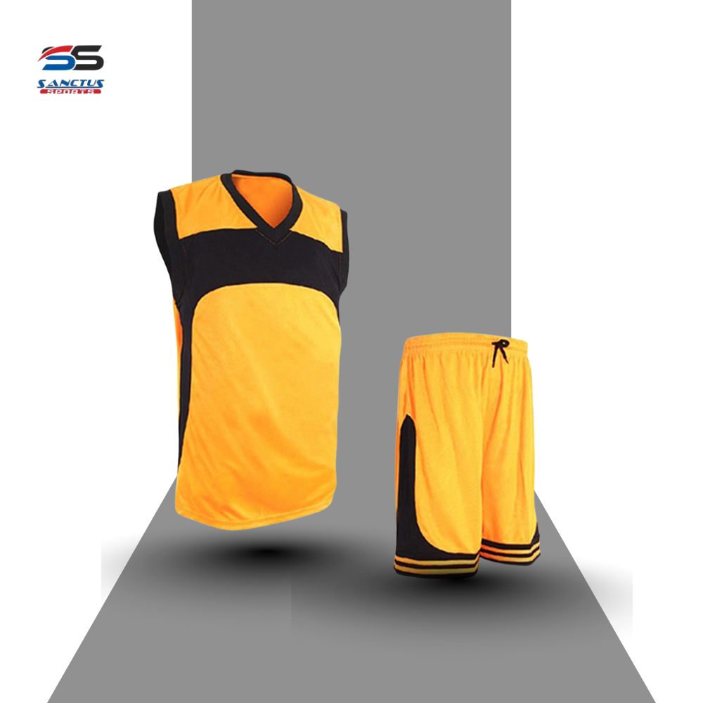 Orange and Black V-Neck Mesh Basketball Uniform (Jersey and Shorts)