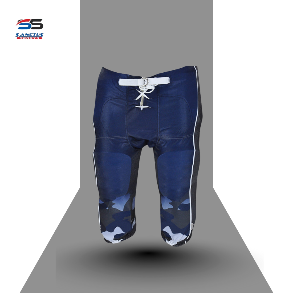 Navy Blue Integrated Padded Football Pants with White Piping and Camo Accent